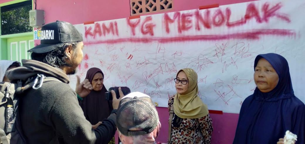 Aksi itu ditandai dengan pembubuhan tandatangan di spanduk, sebagai simbol penolakan penutupan jalan.