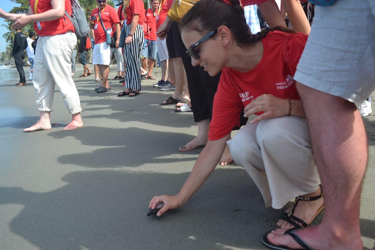Peserta PIFAF diajak untuk melepaskan tukik atau bayi penyu sebanyak 203 ekor.