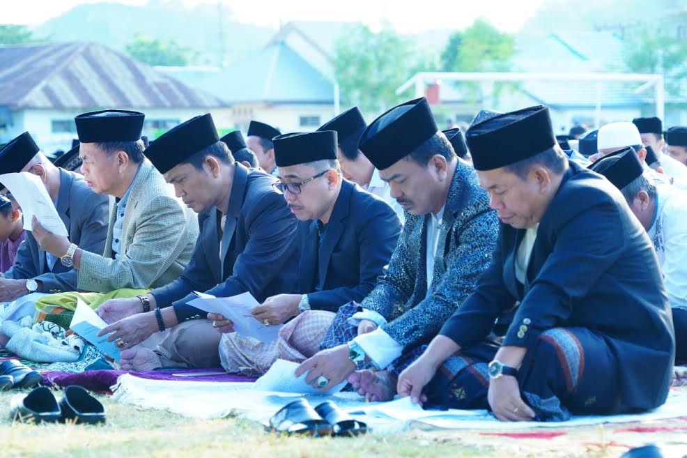 Kedua pimpinan di Majene Salat Id bersama Kapolres Majene, AKBP Asri Effendy, Sekkab Andi Achmad Syukri, dan sejumlah kepala Organisasi Perangkat Daerah (OPD).