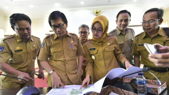 Peta diterima Bupati Luwu Utara, Indah Putri Indriani didampingi Pelaksana Harian Kepala Bappeda Luwu Utara Suaib Mansur di Ruang Pola Kantor Gubernur Sulsel, Makassar, Senin (19/8/2019).