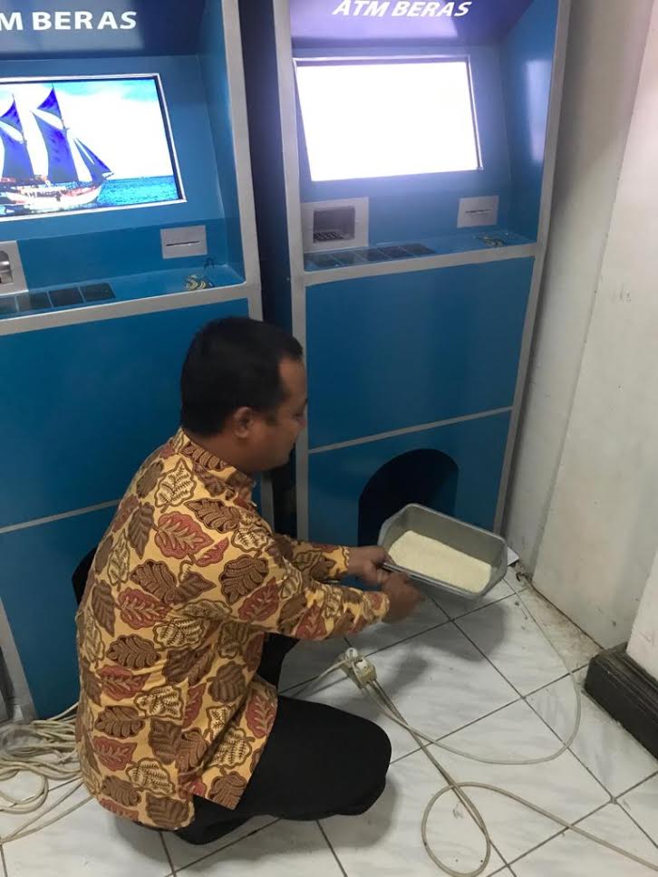 "Jadi kita adakan empat unit dulu, sambil melatih operatornya untuk mengoperasikan mesin ATM Beras ini," ujar Suherman.