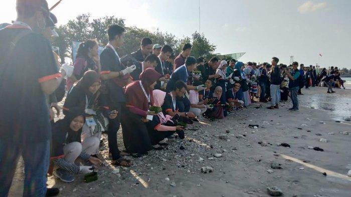 Selain membersihkan sampah-sampai di sekitaran pantai, mereka juga menjalankan aksi melepas tukik secara massal.
