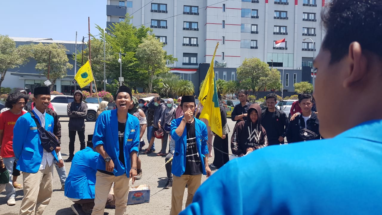 Unjuk rasa dilakukan puluhan kader PMII Mamuju, di belakang kantor gedung baru dipimpin langsung Ketua Umum PMII Mamuju, Muhammad Hassanal.
