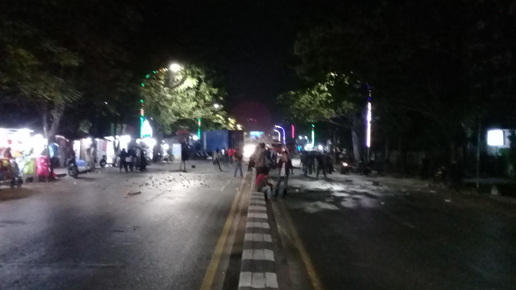 Mahasiswa blokade jalan menggunakan truk kontainer yang mereka sandera.