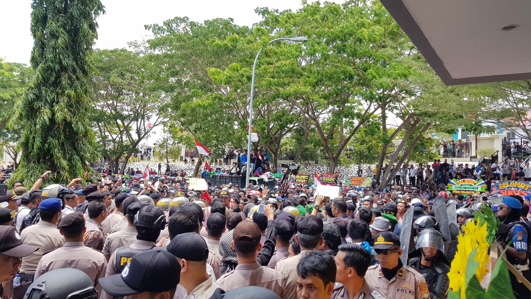 "Itu untuk memenuhi keinginan mereka masuk di halaman gedung DPRD. Untuk menemui tujuanny. Bahkan ada pak Kapolda dan Danrem ikut temui mereka,"ucap Arvan.