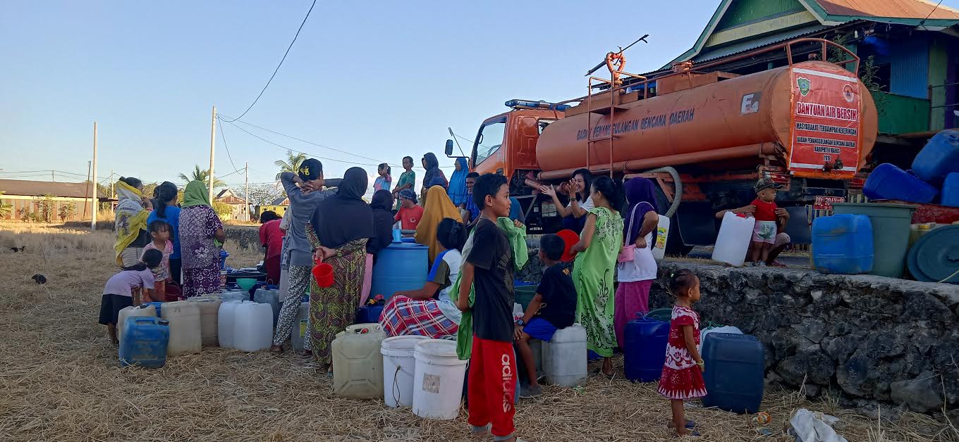 Saat truk tangki berkapasitas 5 ribu liter air bersih tiba, warga pun langsung "menyerbu" penyaluran air bersih tersebut.