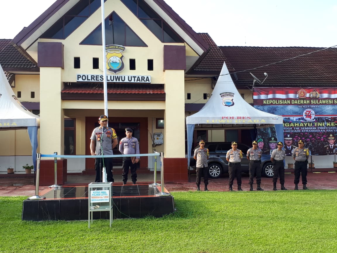 TRIBUNLUTRA.COM, MASAMBA - Kapolres Luwu Utara, AKBP Boy FS Samola memimpin apel di Halaman Mapolres Luwu Utara, Jl Jenderal Ahmad Yani, Kelurahan Kappuna, Kecamatan Masamba, Senin (7/10/2019).