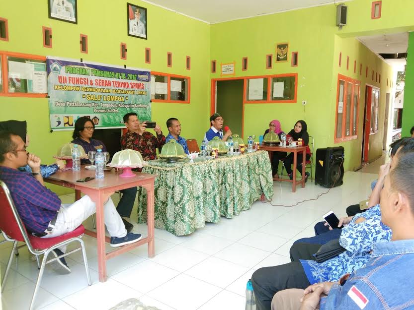 Penyerahan ini juga diterima Kepala Desa Pattallassang, Abdul Hafid dan diteruskan kepada Ketua SPAMS sekaligus ketua satuan pelaksana (Satlak) KKM Salu' Lompoa, Mohammad Afri yang berlangsung di Aula Kantor Desa Pattallassang, Kamis (17/10/19).