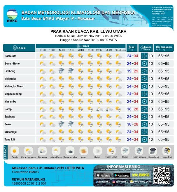Awal November 2019, Berikut Prakiraan Cuaca di Luwu Utara