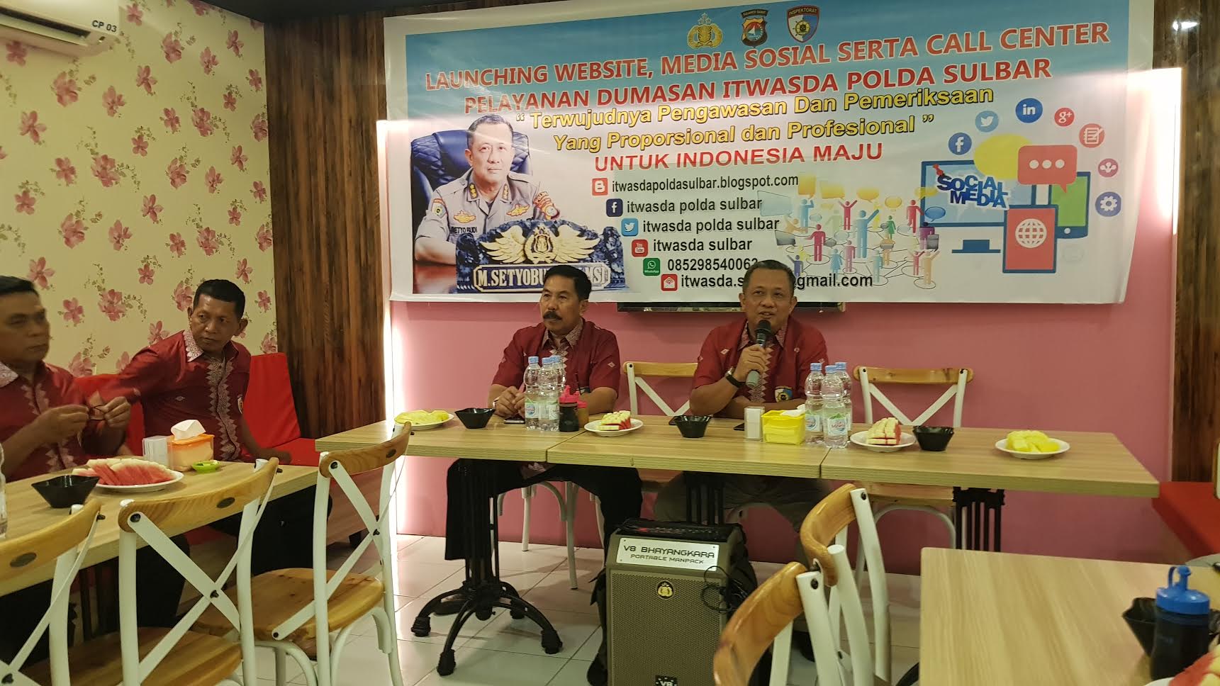 TRIBUN-TIMUR.COM, MAMUJU - Irwasda Polda Sulawesi Barat luncurkan website dan akun media sosal serta call center pelayanan Dumasan di Rumah Makan Cilacap, Jl Bau Massepe, Kelurahan Rimuku, Mamuju, Selasa (5/11/2019) malam.