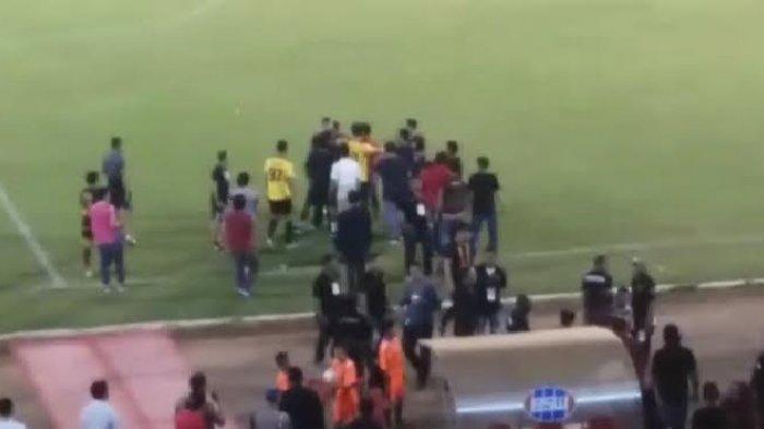 Keributan itu terjadi setelah pluit panjang terdengar dari wasit yang menandakan berakhirnya laga, Senin (18/11/2019).