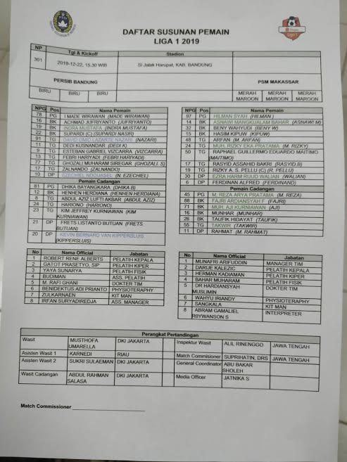 Susunan pemain Persib Bandung vs PSM Makassar, pun sudah diturunkan.