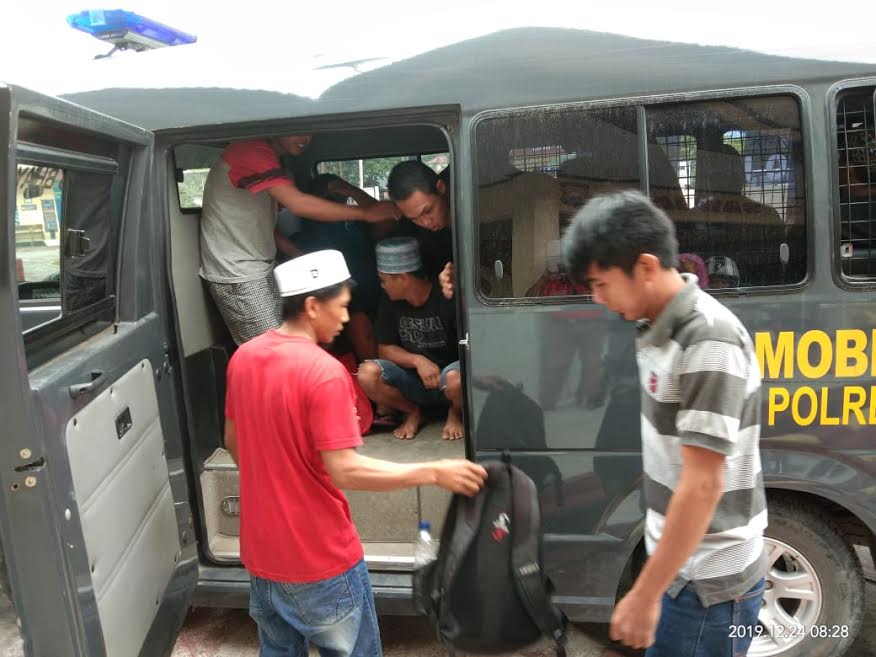 Tahanan diangkut menggunakan mini bus dari Kantor Polres Luwu Utara di Jl Jenderal Ahmad Yani, Kelurahan Kappuna, Kecamatan Masamba ke Rutan Masamba di Desa Benteng, Kecamatan Mappedeceng, Selasa (24/12/2019).