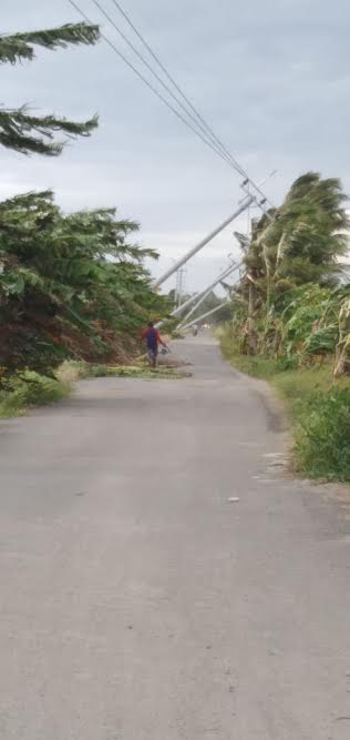 Sejumlah tiang listrik pun dikabarkan miring akibat terjangan angin kencang tersebut. Bahkan, ada yang pula jatuh.
