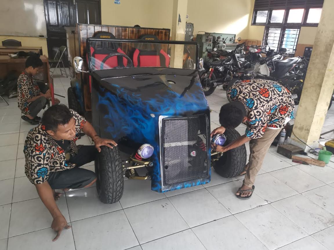Siswa Balai Rehabilitasi Sosial Penyandang Disabilitas Fisik (BRSPDF) Wirajaya Makassar mengubah motor menjadi mobil