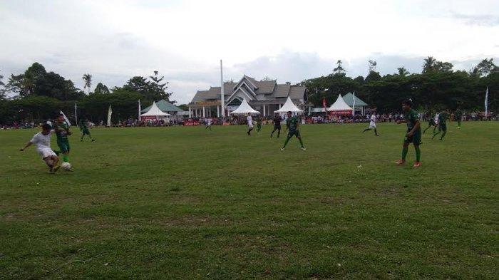 Pertandingan kedua tim berlangsung seru di Lapangan Taman Siswa, Kelurahan Kappuna, Kecamatan Masamba, Kabupaten Luwu Utara, Senin (3/1/2020).