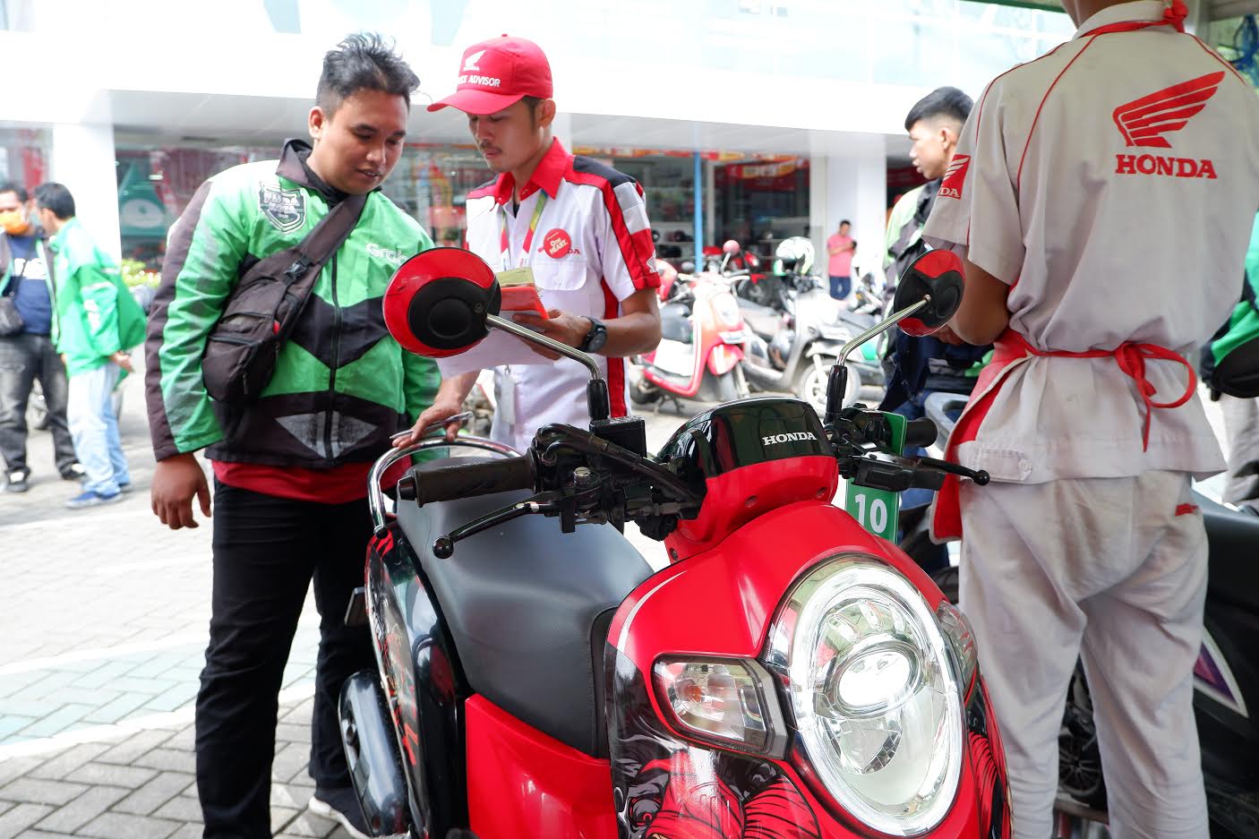 Astra Motor Makassar mengajak mitra Grab untuk service sepeda motor Honda guna menjaga peforma motor tetap maksimal.