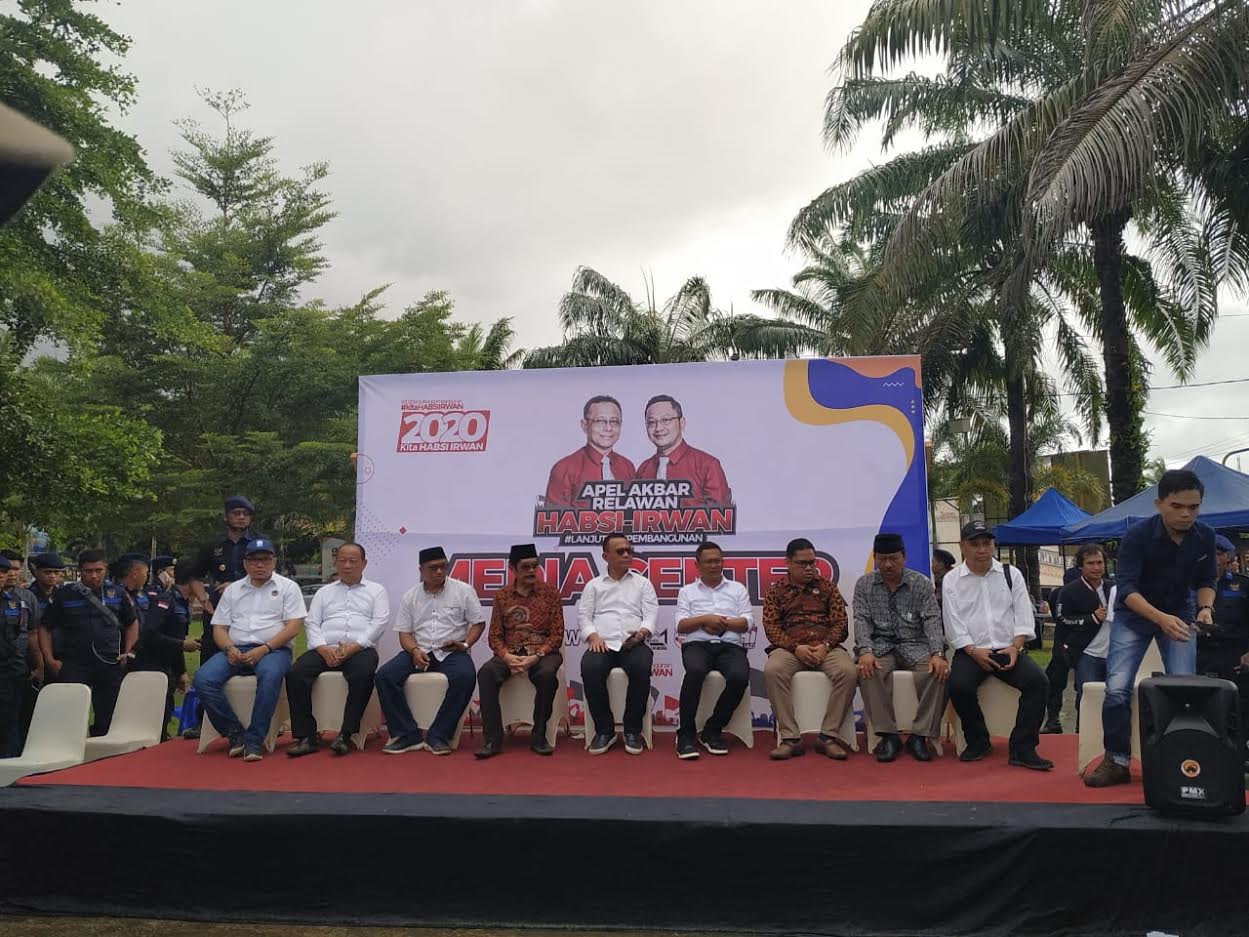 Usai apel akbar kepada wartawan pada sesi pressconference Habsi-Irwan menyampaikan apresiasi kepada para relawan dan tokoh yang hadir dalam kegiatan tersebut.