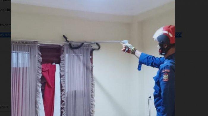 TRIBUN-TIMUR.COM, MAKASSAR -- Tim Rescue Damkar Kota Makassar berhasil mengamankan seekor ular jenis Black Boiga yang masuk dalam rumah warga, Senin (2/3/2020).
