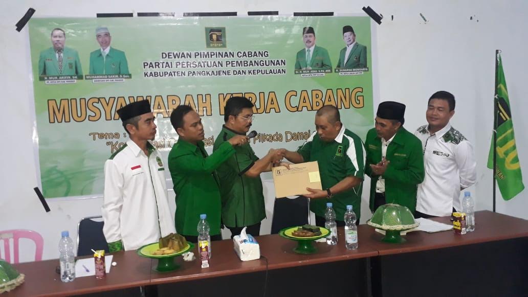Rekomendasi pasangan Rahman Assegaf dan Muammar Muhayyang diserahkan saat Musyawarah Kerja Cabang (Mukercab) PPP Pangkep.