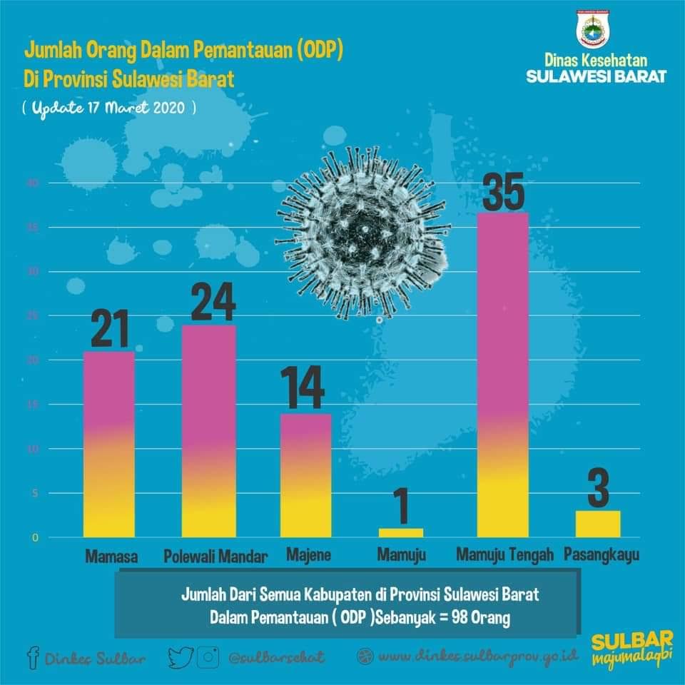 Dengan jumlah yang disebutkan, total keseluruhan ODP di Sulbar sebanyak 98 orang.