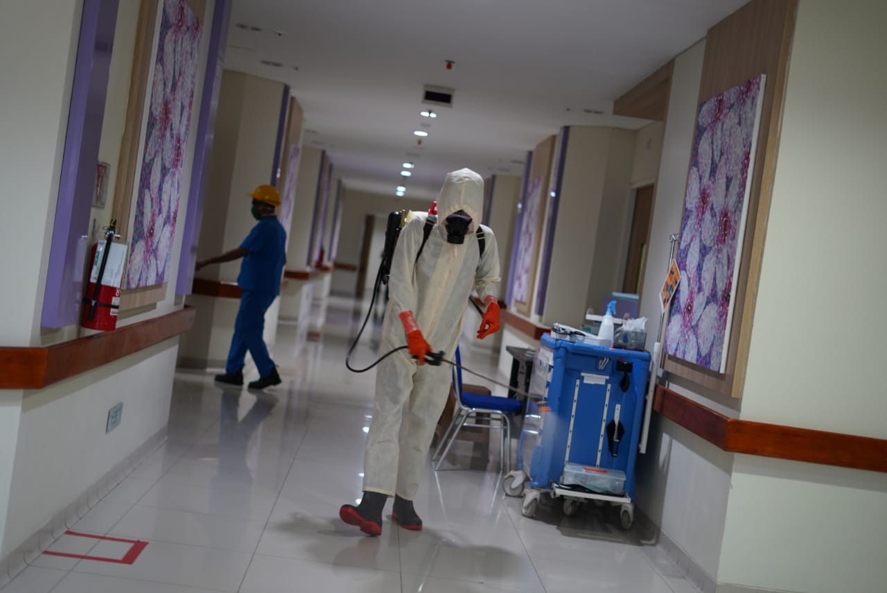 Penyemprotan dilakukan guna mencegah terjadinya infeksi Virus Corona ( Covid-19 ) atau untuk membasmi kuman penyakit.