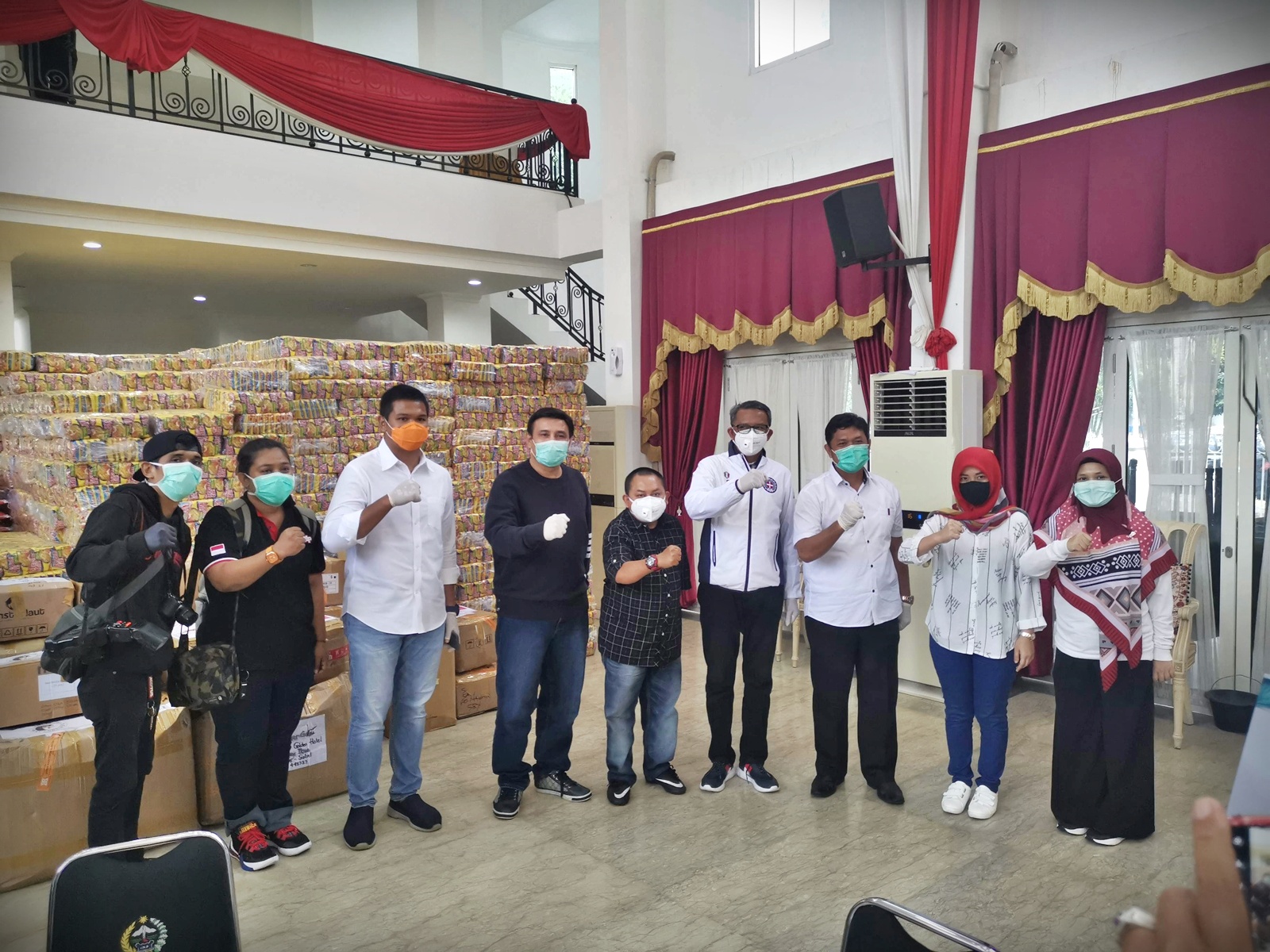 Bantuan diterima Gubernur Sulsel, Nurdin Abdullah di Ruang Pattingalloang Rumah Jabatan Gubernur Jl. Jend Sudirman Kota Makassar, Rabu (8/4/20).