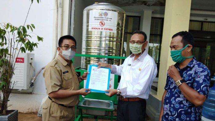 Peduli Pencegahan Virus Corona, SMKN 3 Gowa Serahkan Bantuan Tempat Cuci Tangan ke Disdik Sulsel