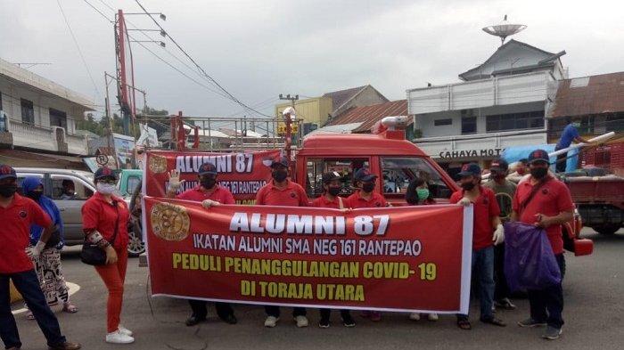 TRIBUNTORAJA.COM, RANTEPAO - Pengurus Alumni Angkatan 87 Ikatan Alumni SMAN 161 Rantepao, Sulawesi Selatan membagikan masker kepada pengendara atau warga Toraja Utara yang melintas di jalan raya.
