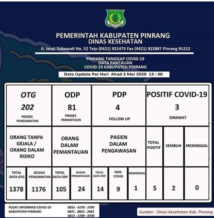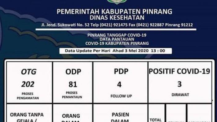 Dinas Kesehatan Kabupaten Pinrang membeberkan data terkini Covid-19 di wilayah kerjanya, Minggu (3/5/2020).