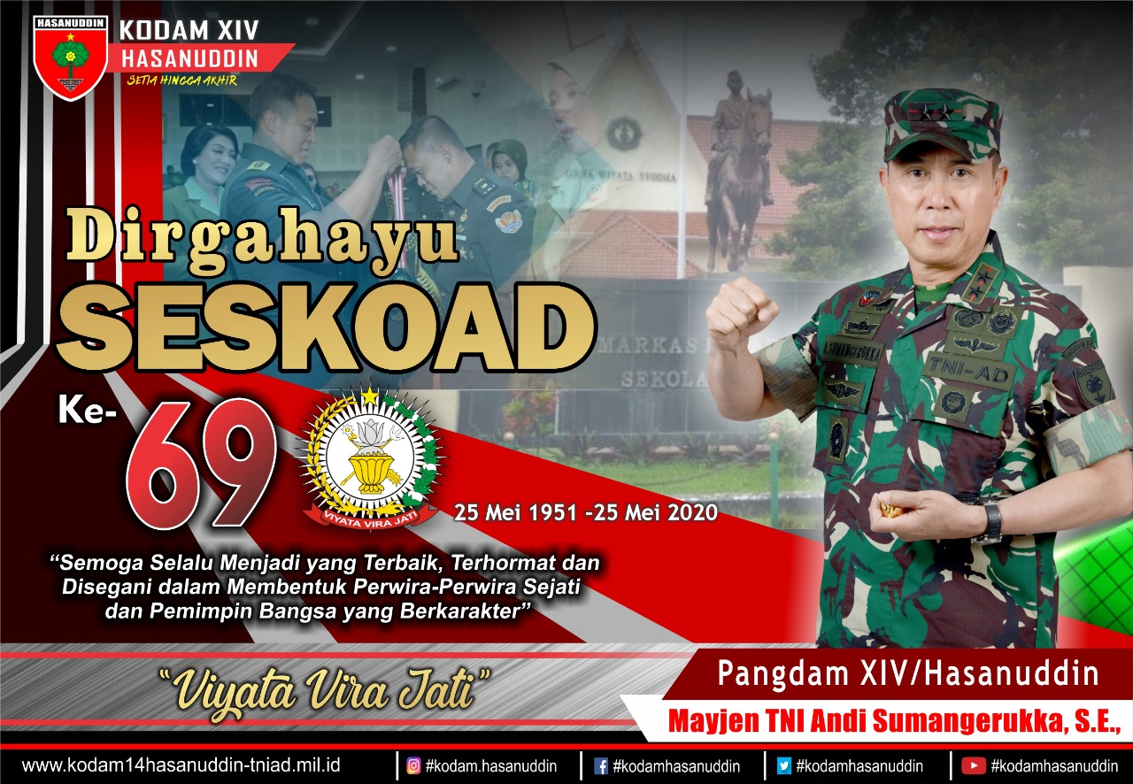 TRIBUN-TIMUR.COM, MAKASSAR - Panglima Kodam XIV/Hasanuddin, Mayjen TNI Andi Sumangerukka menyampaikan ucapan Dirgahayu buat Sekolah Staf Komando Angkatan Darat yang memasuki ulang tahunnya ke-69, Senin, (25/5/2020)
