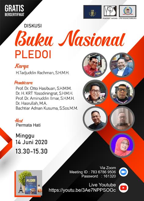 Buku berjudul Pledoi akan dikupas dengan menghadirkan sejumlah pembicara seperti, Prof Dr Otto Hasibuan, Dr H.KRT Yosodiningrat, Prof Dr Aminuddin Ilmar, Dr Hasrullah, dan Bachtian Adnan Kusuma.