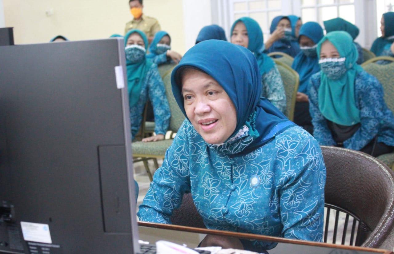 Ketua TP PKK Barru, drg Hj Hasnah Syam MARS yang memberikan pengarahan lewat video conference di rumah jabatan bupati Barru, menyemangati para pengurus dan anggota PPK kabupaten, kecamatan, kelurahan atau desa.