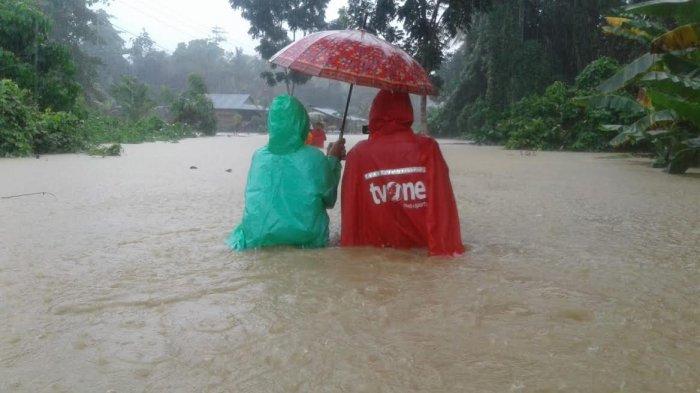 Hujan deras mengakibatkan sebagian wilayah Kabupaten Luwu, Sulawesi Selatan, terendam banjir, Sabtu (6/6/2020) pagi.