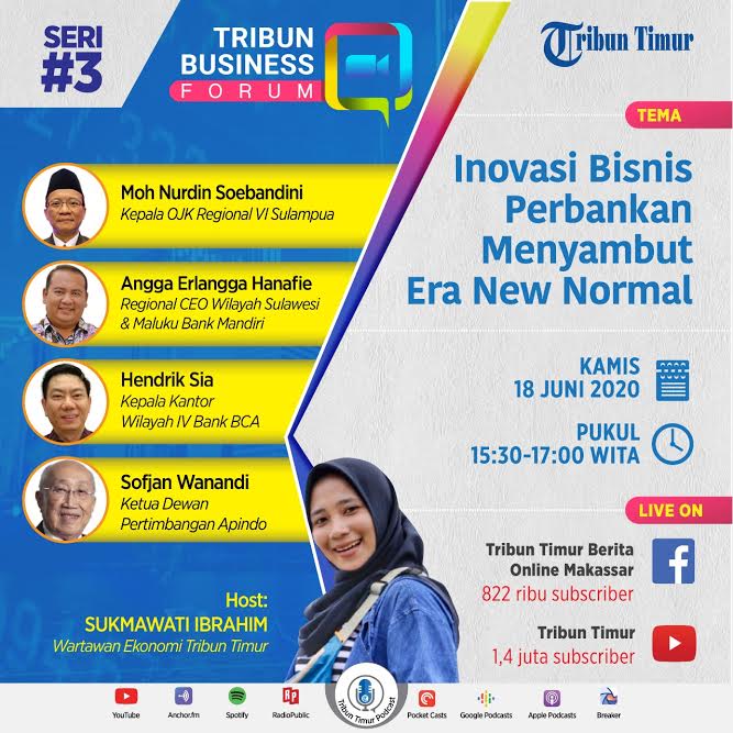 TRIBUN-TIMUR.COM, MAKASSAR - Tribun Business Forum akan menggelar diskusi virtual dengan tema "Inovasi Bisnis Perbankan Menyambut Era New Normal yang akan dilaksanakan pada Kamis (18/6/2020).