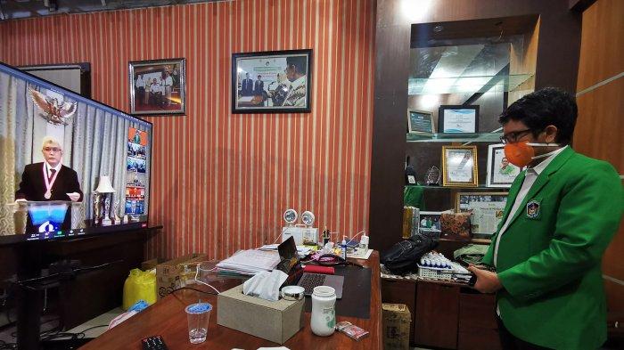 TRIBUN-TIMUR.COM, MAKASSAR - Dekan Fakultas Teknologi Industri (FTI) Universitas Muslim Indonesia (UMI) Dr Zakir Sabara menyaksikan penyumpahan dan yudisium Program Studi Program Profesi Insiyur (PS PPI) angkatan VII secara virtual via channel Youtube dan facebook Tribun Timur, Jumat (19/6/2020).
