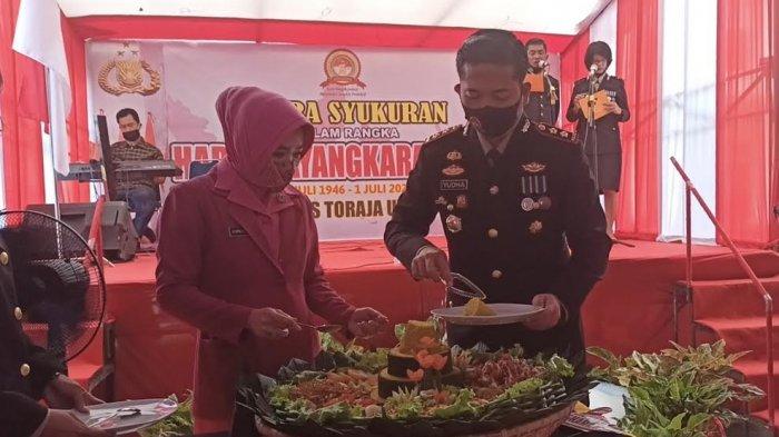 TRIBUNTORAJA.COM, RANTEPAO - Kepolisian Resort (Polres) Toraja Utara, mengelar acara syukuran dalam rangka Hari Uang Tahun (HUT) ke 74 Bhayangkara.