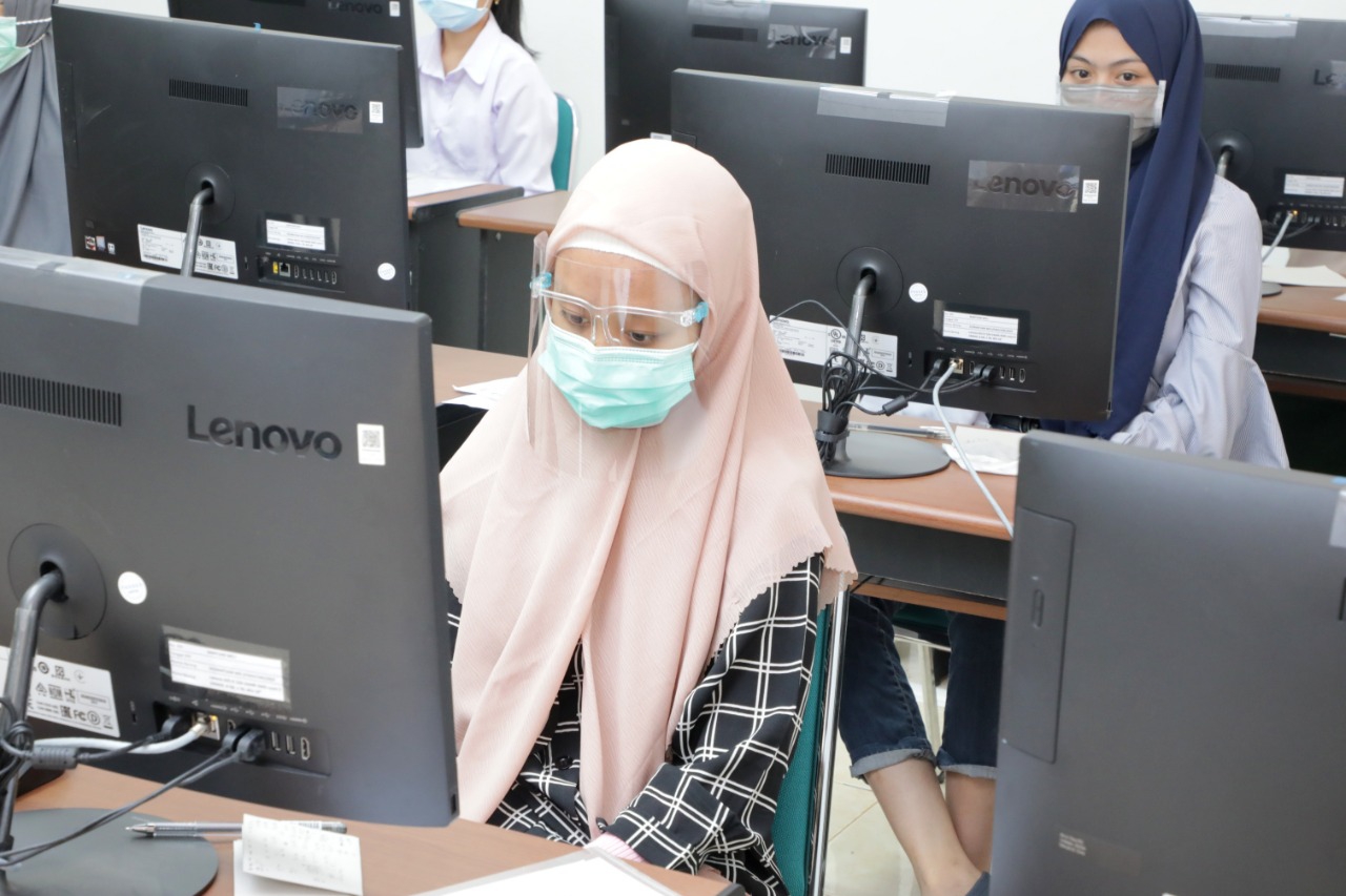TRIBUN-TIMUR.COM, MAKASSAR - Pelaksanaan Ujian Tulis Berbasis Komputer (UTBK) mulai berlangsung, Minggu (5/7/2020). Pusat UTBK Unhas menyelenggarakan ujian pada 14 lokasi. Terdapat sebanyak 72 ruang ujian yang disiapkan pada lokasi-lokasi tersebut.