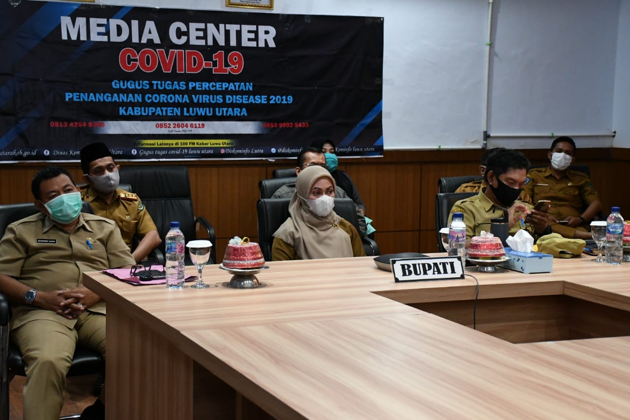 Bupati dan kepala Organisasi Perangkat Daerah (OPD) mengikuti paripurna dari Ruang Command Center Kantor Bupati Luwu Utara.