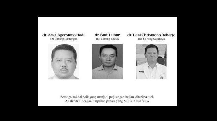 Ketiganya ialah Dokter Arief Agoestono Hadi (IDI Lamongan), Dokter Deni Chrismono Raharjo (IDI Surabaya), dan Dokter Budi Luhur (IDI Gresik).