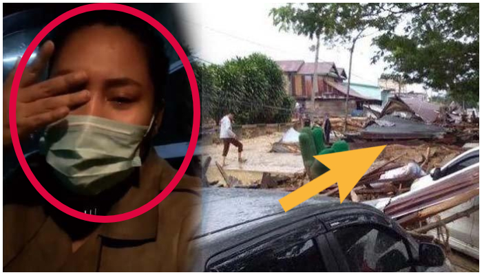 Sosok Artis Evi Masamba banjir air mata, tak kuasa menahan sedih atas musibah banjir yang menimpa warga di kampung halamannya di Masamba, Luwu Utara.