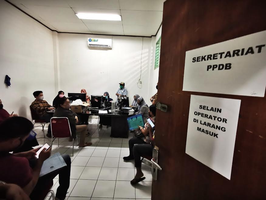 Operator mengarahkan para otang tua yang mengalami kendala input data langsung ke Kantor Disdik. tribun timur/muhammad abdiwan