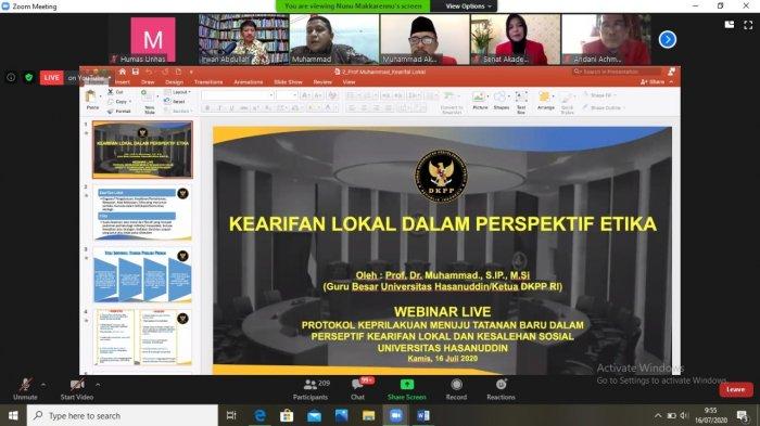 TRIBUN-TIMUR.COM, MAKASSAR - Dewan Professor Universitas Hasanuddin menyelenggarakan Seminar Online Seri Kelima, kali ini mengambil tema"Protokol Keperilakuan Menuju Tatanan Baru Dalam Perspektif Kearifan Lokal dan Kesalehan Sosial", Kamis (16/7/2020).