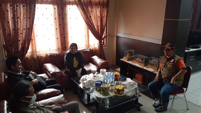 Sebelum menyerahkan beras, Evi Masamba menemui Muslim di ruang kerjanya.