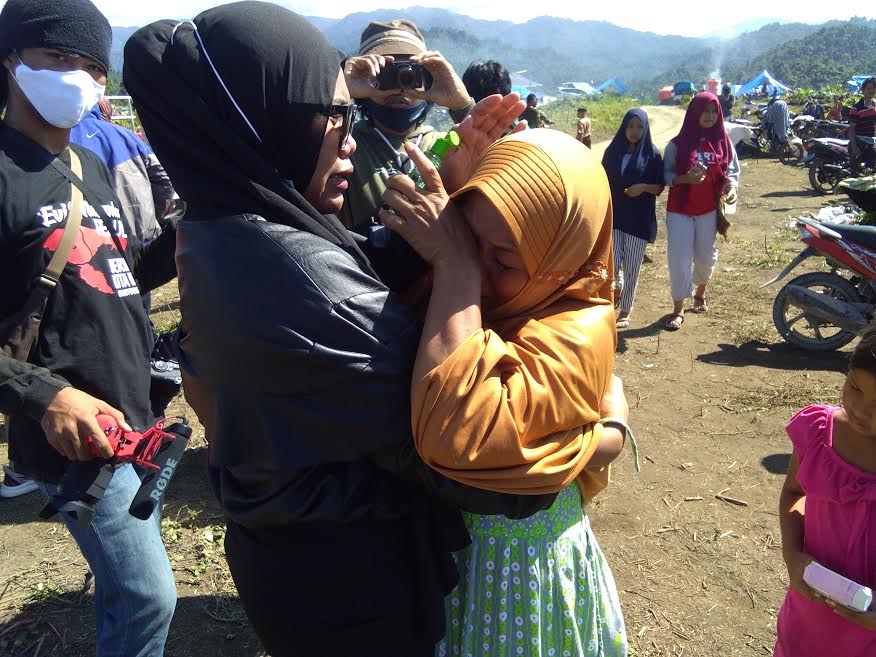 Lokasi penyerahan bantuan di antaranya di Desa Radda dan Desa Meli. Banyak pengungsi terharu dan menangis didatangi Evi Masamba.