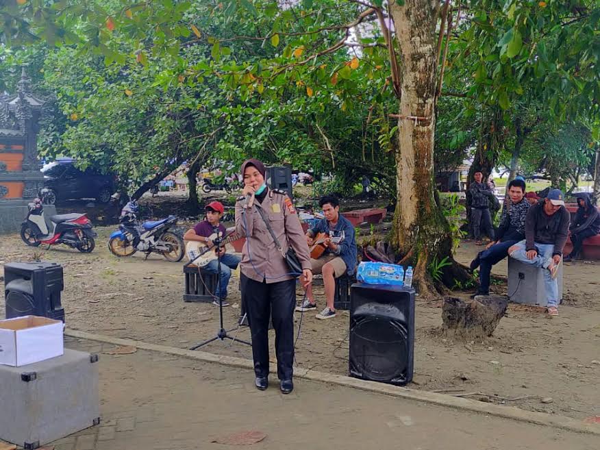TRIBUNLUTIM.COM, BURAU - Sejumlah polisi wanita (polwan) Polres Luwu Timur, sosialisasi protokol kesehatan di pantai Ujung Suso, Desa Mabonta, Kecamatan Burau, Sulawesi Selatan (Sulsel), Minggu (2/8/2020).
