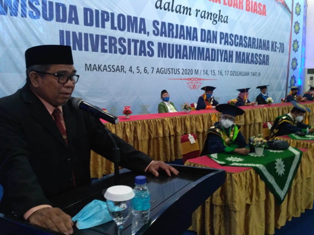 TRIBUN-TIMUR.COM, MAKASSAR - Ketua BPH Unismuh Makassar, Dr Muhammad Syaiful Rahim, pada acara Wisuda ke-70 Unismuh Makassar, Selasa (4/8/2020), menegaskan prosesi wisuda hari ini merupakan momen bahagia di tengah situasi pandemi Covid-19.