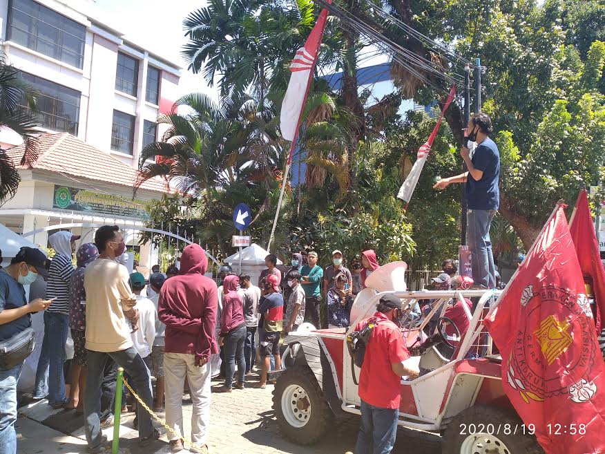 TRIBUN-TIMUR. COM, MAKASSAR - Puluhan warga menggelar aksi unjuk rasa di depan Kantor Pengadilan Negeri Makassar Jl Kartini, Kecamatan Ujung Pandang, Makassar, Rabu (19/8/2020) sekitar pukul 13.00 Wita.