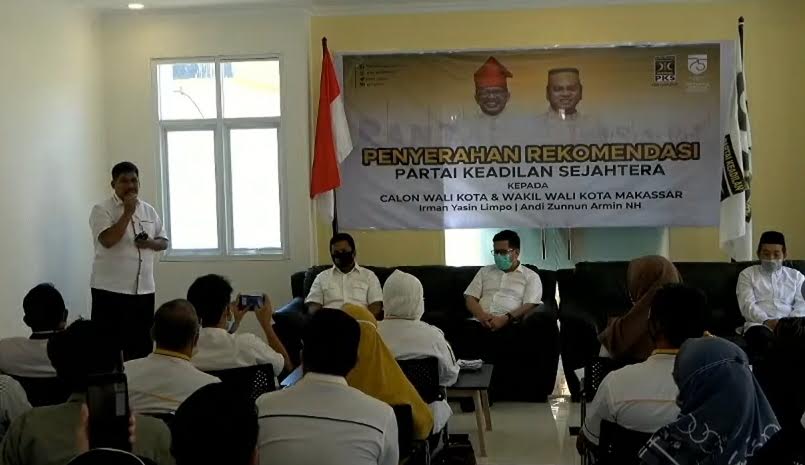 TRIBUN-TIMUR.COM, MAKASSAR - Ketua DPW PKS Sulsel Surya Darma, menyerahkan rekomendasi kepada pasangan calon Irman Yasin Limpo-Andi Zunnun NH (None-Zunnun) untuk maju pada Pemilihan Wali kota (Pilwali) kota Makassar, Senin (24/8/2020).