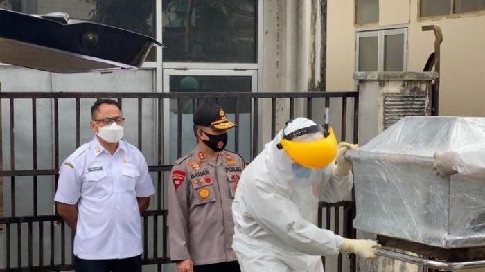 Karena terkonfirmasi positif, pemulasaraan jenazah dilakukan dengan prosedur penanganan Covid-19.